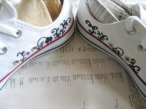 2. 水彩画鞋:用水彩在鞋子上作画,画面清新自然,富有诗意。